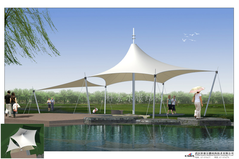 工程地點:武漢市萬科地產 面積:1000平方米工程鋼材:標準Q235材質規(guī)格的高頻焊管,使用年限50年工程膜材:PTFE膜材,質保書15年